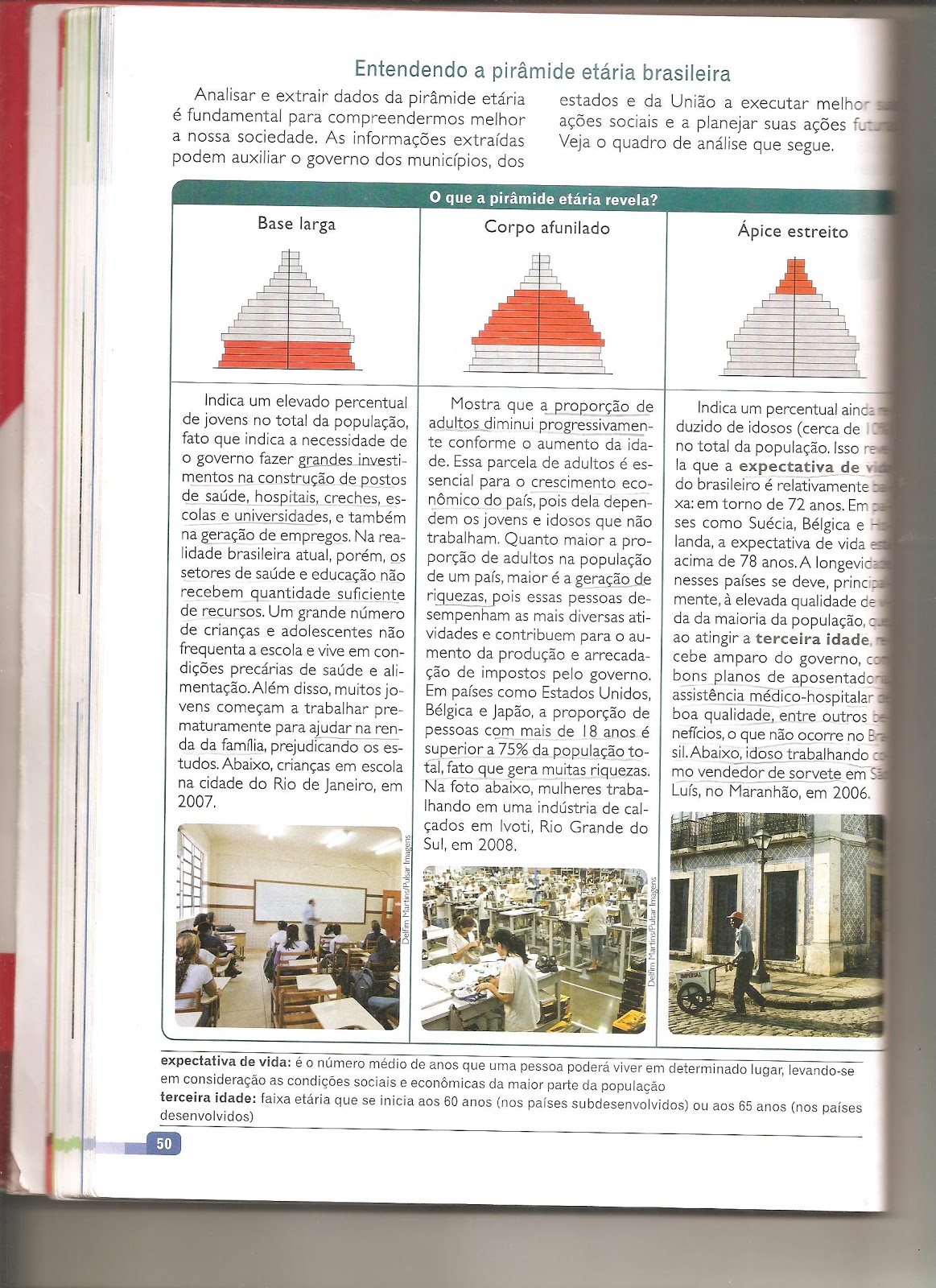 Vamos aos trechos, começando à página 50, do Capítulo 5 – A distribuição da população brasileira – Entendendo a pirâmide etária brasileira, donde se lê, com grifos de minha parte:
